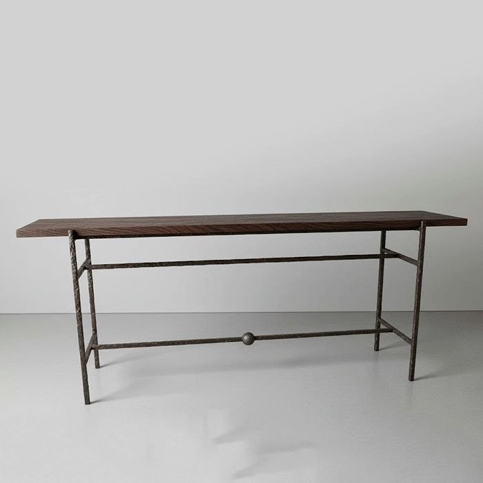 La Consola Sicilia es una pieza que destaca por su diseño artesanal y elegante. Fabricada en España, esta consola, con tapa de nogal, combina funcionalidad y estética, siendo ideal para espacios como recibidores, salones o pasillos.
